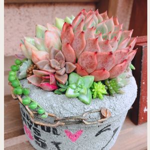 テレビが、急につかなくなりました。 もう、15年位は使ったから仕方がないけど、 なぜ、電化製品って急に壊れるのでしょうか😢 もう、つかないのが分かってるのに、 何度も無意識にスイッチを入れてしまう。 バカなの❔🤣 そして、無いと困るとおもって、大至急 家電量販店に走り、じっくり調べもしないで衝動買い😱 待ちに待ったテレビが届いたら、新しいテレビに家族で大喜び٩(๑^o^๑)۶ 絵に書いた様なバカ家族です🤣🤣 ロハスでGETした、ikuraさんのコンクリ鉢に寄せ植えしました〜( ˶ˆ꒳ˆ˵ ) 一際目を引くバリューションちゃん ちょっと大きかったかな❔ でも、やっぱりムチャクチャカワユクて、 自己満足100点満点です( ⑉¯ ꇴ ¯⑉ ) こないだはsatoちゃんの木箱、そして、 ikuraさんの鉢と、可愛い鉢に寄せると、 テンションあがるぅ〜❤️ 多肉棚が、ワンランクupしました(*´˘`*)♡