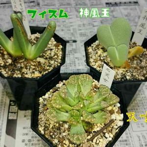 愛智園の『神風玉』。 この神風玉さんはケイリドプシス属のメセン系多肉さんになります(*´꒳`*) 神風玉さんはコノフィツムさんを大きくしたような子なので、コノフィツムさんのお兄さん多肉のように感じます(๑˃̵ᴗ˂̵) この子が咲かす黄色と白色の可愛らしく大きなお花はまるで花火のようで、一度見たら忘れられないような魅力もあります(*´꒳`*) 他にもピンク色のお花タイプ(妖艶の女王さん)の子などもいます(๑˃̵ᴗ˂̵) さらに神風玉さんは種鞘がとても個性的で、こちらも一度見ると忘れられないような魅力があります(。・ω・。) 育て方としては以前に投稿したリトープスさんやコノフィツムさんなどと同じようにしていただければ一年中元気でいてくれます(๑>◡<๑) また今の冬のような寒い季節は霜などに当たるとケガをしてしまう恐れがあります。 なので5度〜3度を下回るような日は安全を考えて、お部屋か温室に避難させていただければと思います(*´꒳`*) 神風玉さんは強健なメセンさんであり、さらにお花から種鞘まで魅力が詰まった素敵な多肉さんです(*´ω`*) 個人的にはコノフィツムさん達と一緒に並んでいると、まるで兄弟のように見えて面白いなと感じます(о´∀`о) この子はホームセンターやお花屋さんではあまり見かける機会の少ない多肉さんかもしれません。 ですが、もしどこかで見かけられましたら是非一度手にとって触れ合っていただきたいなと感じます(´∀`) そしてお気に入りの子に出会えましたら、家族の一員として迎え入れていただけたらなと思います(*´꒳`*)