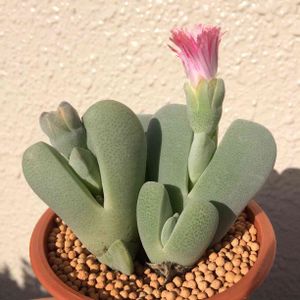 また多肉です。 先日の鶴仙園でゲットした神風玉。 買った時から蕾が付いていましたが、今日ピンクの花弁をのぞかせてくれました💖 この変わった姿で生きてるのねーと、ちょっと感動✨✨