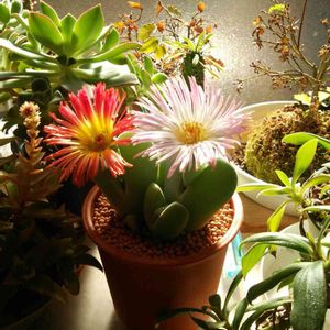 先日メセンの真ん中にポッチ?を見つけて何だろう…と思ってたらお花が咲きだしました! 咲かないと花の色わからないよ~と言われてましたが ピンク❤️でした! 神童の花もずっと咲いてます😌 クラッスラだけど臭くなかった!良かった~笑 茜の塔が今のところ臭さNo.1かも知れないです💦 これも臭い😭ってのあったら教えて下さいね!