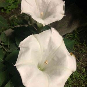 昼間はつぼみばかりで、結局夜にしか出会えなかったケチョウセンアサガオさん。 昨日見に行ったら、台風の準備なのか、もう切られてしまっていました😅 夜目に、白く浮かび上がる姿が綺麗でした✨ いよいよ風が強くなって来ました。 皆さんお気を付けて🙏