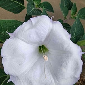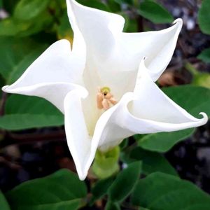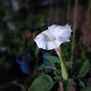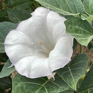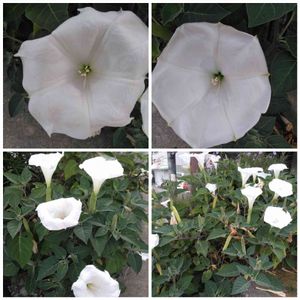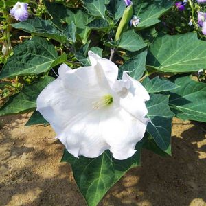 我が家の庭 ケチョウセンアサガオ ナス科 チョウセンアサガオ属 どこから来たのでしょう 居座って5年😁 まっ白でとても綺麗です 毒性あり