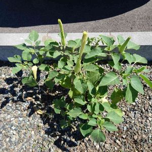 8/24 (火) •*¨*•.¸¸☆*・゚ 💚🤍ケチョウセンアサガオ🤍💚 学名❀✿Datura inoxia 和名❀✿ケチョウセンアサガオ(毛朝鮮朝顔) 別名❀✿アメリカチョウセンアサガオ (亜米利加朝鮮朝顔) 英名❀✿thorn-apple。。。etc…… ※ナス科 ※チョウセンアサガオ属 歩道街路樹の下📸📱💚蕾