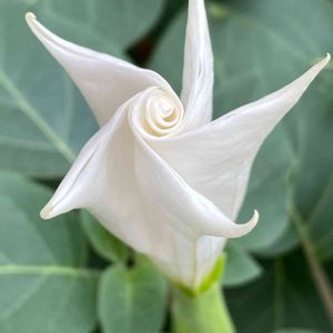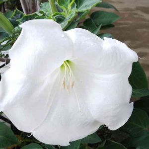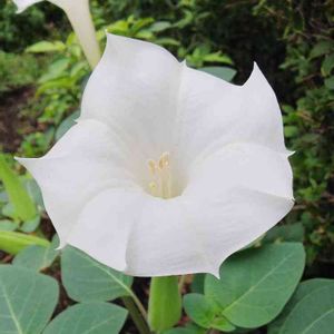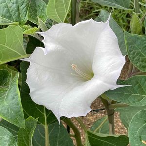 我が家の庭 ケチョウセンアサガオ 別名アメリカチョウセンアサガオ ナス科、チョウセンアサガオ属 直径12cmもありました まっ白でとても綺麗です 毒性あり