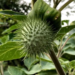 木場公園 帰化植物見本園より チョウセンアサガオの特徴的な実 チョウセンアサガオはかなり強い毒があるので、誤食には注意です。エンジェルストランペットも同じく