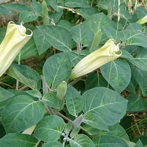 更地になっているところに、あまり見られない花⁉️ ケチョウセンアサガオ(別名アメリカチョウセンアサガオ)、猛毒だそう😱