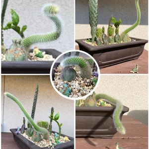 夏の間、外管理にしていたサボテン鉢🦕🦖🌵 日焼けしちゃって💦このままでもいいのでしょうか⁉︎ それでも3〜4倍の高さになってびっくり 恐竜のしっぽのような姿に成長した🌵 ミニチュア達🦕🦖の親分🌵です