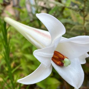 今年、初めて咲いたユリ🤍 庭のあちこちで、ツボミ膨らんでます。 セメントの隙間からも、毎年出てくる強い子です💪 もう少しでお盆ですね。 お墓掃除🧹行かなきゃだわ💦