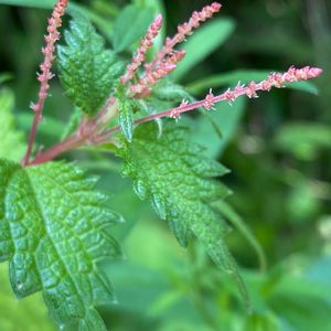 こちらも沢沿いで。涼しげでしょう? ヤブマオですね✨ 去年からこの仲間の姿かたちに魅せられています✨ 藪麻苧 イラクサ科ヤブマオ属の多年草 北海道〜九州の山野に普通。 葉は対生。粗い鋸歯があり、先に行くほど粗くなる。 花は下部に雄花序、上部に雌花序。生育が良いと円錐花序になるが、多くは穂状。 花期は7-9月 7月29日 麻生山