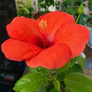 ハイビスカス NEWロングライフシリーズ アドニスレッド。 2つ目の花が咲きました。 1輪目は、次の日に萎みました。 夏は2日しか、保ちませんね。 前、冬は、部屋で、4.5日保ってくれるときもありましたが、、、