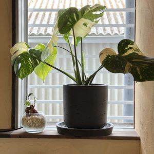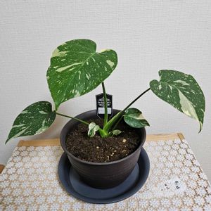 斑入りモンステラ タイコンストレーション 10月11日(土)にお迎えしました🗓️ 先日BIRTHDAY🎁🎂プレゼントでいただきました😃 2~3年前だとあまり流通されてなくて😅肉眼で見たこともありませんでした😵💦 やっと見つけた園芸店ではガラス張りになっていて デカイ斑入りのモンステラも一桁多い価格でした~😱 根元にある小さな葉っぱ🍀もある~😍楽しみだぁ~✌️
