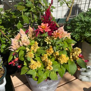 こんばんは😊 沢山の夏苗とサヨナラして 土を再生して鉢を洗う作業も だいぶ進みました が! まだまだ処分できない秋の寄植え🪴 ケイトウとダリア、アルテルナンテラも お花が少ない中カラフルで綺麗なんです💖 でもだいぶ気温下がってきたからなー あともう少しかなー