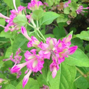 変化した☆オシロイバナ☆ こんなの初めて見ました‼️ どうしたらこんな スカートが履けるんでしょうか? もう蕾の時から違いますよね😱暑さのせい⁉️❓❓❓❓ *追記* ♥微笑み返し♥という名前があり、 園芸店でも売られているみたいです(✻´ν`✻)