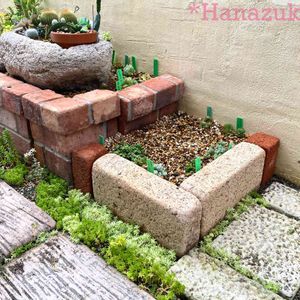 こんにちは~ 今日は「半日陰花壇」を新設していました。 アプローチの既存の花壇の、さらに奥につけ足す感じで、少し低く作ってあります。 花壇の壁は、レンガを少しアプローチの砂地に埋め込んだだけです。 レンガ分の高さしかないので、鉢底石は入れず、再生した多肉の土だけを入れました。 写真左側が南側になるので、たぶんちらっとしか日が当たりません。 夏は「半日陰になる地植え花壇」があったほうがいいと思い、夏に弱いセダムなどを植えてみました。 どれも、鉢植えは鉢植えでありますが、一部だけを地植えにしています。 今植えているのは、 ステフコ、白雪ミセバヤ、ディバージェンス(初の夏越しなので耐暑性不明)、碧魚連、グラウコフィラム、フォステリアナム、ゴールドアンジェ、スプレンドレです。 あと、写真3枚目、既存の花壇の「軽石の陰」になる部分にも、いくつか夏に弱そうな多肉を植えています。 ほとんどが夏越し初めての種類なので、様子見ですね。 斑入り小型キリンソウ、ミッデンドルフィアナム変種ストリアツム、モシニアナム、ヒントニー、茜の塔錦 今年は暑くなるのが早いので、弱そうなものはどんどん裏へ移動させています。 昨年は弱ってから移したものが多かったですが、弱る前のほうが良さそうだと昨年学習しました😅 白雪ミセバヤもまだ表で様子を見ていたのですが、一部怪しいところがあり、今日移動させました…。