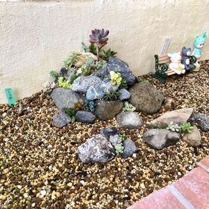 おはようございます。 花壇の新設コーナー 超ミニミニロックガーデンです。 石のある範囲は 25cm四方くらい。 使った石は、ほぼ、うちの庭から出てきた石です😆 この石たち、庭やアプローチを整地するたびに少しずつ出てきたものです。 特に理由もなく集めてあったのですが、ふと花壇に使えるかも!と思いまして(笑) こちらのpicは全体像の記録用です。 品種紹介は次のpicで。 石積みに植物を植えるのは、独特の工夫がいりますねえ。 こういうのが好きなのは、私が造園学科だったからでしょうか😅