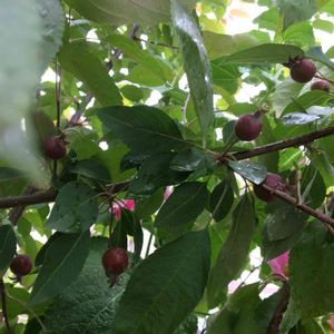 おうちの姫リンゴの実 青い実がなっていたの気づかず💧 だって葉っぱも緑だし💦 花は可愛くて好き でも赤い実なればもっと可愛い でも虫が寄って来るのは嫌