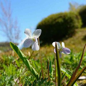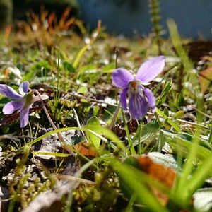 COCOとの散歩 いつもの公園で、スミレが咲いていました。 小さなお花だけど、紫色が冴えてます。