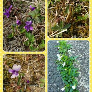 今日のお散歩中に見つけたスミレッ! 右下の白いスミレは、道路の端っこにありました。車に踏まれませんように…。