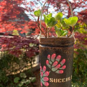 雨も上がり良いお天気になりました。 バックの何とか⁇紅葉🍁も赤くなってきました。 今日はうぐいすが気持ち良さそうに「ほぉーほけきょ」と鳴いております♪(´ε` ) ネコさんのリメ缶相変わらず可愛さ満点💯ですが多肉ちゃんの名前が何だったか(・・?)どなたかわかる方教えてください(╹◡╹)♡ syamunekoさんから御回答頂きました(๑˃̵ᴗ˂̵) アエオニウムのアドニスちゃんでした。 スッキリしました♡ ありがとうございましたm(_ _)m