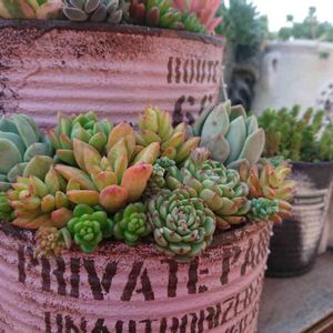 今 一番好きな寄せ植えかも💓♥️❤️ 右は多肉deRingさんでリメ缶購入 理想の垂れ具合になった⤴️ 左は作りたて ホヤホヤ🍀 置き型を急きょ吊し型に変更したから蓋が開き過ぎてる😅