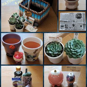 NATURAL FINKEESと茨城でGETした品々 1日目の四国造園さんではファームパルクさんとTY苗を各1ポット 2日目のNATURAL FINKEESでは、THE FACTORYさんの苗とrico_factory_さんの多肉のmyかご(THE FACTORY バージョン)、☆ozco☆さんのリメ鉢&スイーツデコ鉢、鬼っち(リリィ)さんのメガサイズの文鎮鬼っち(桃音ちゃんバージョン)、鬼っちころたま、鬼っちバンド缶バッチ、ビンゴ大会&じゃんけん大会でいただいた品々(めんつゆ、アストロフィツムの苗他色々) WS開始までの待ち時間にTHE GARDEN ISLEさんで購入したイーヴィックス(IIIVIIX)さんの陶器鉢 特にricoさんの多肉のmyかごとイーヴィックスさんの陶器鉢(ビンゴ大会の景品で出されていた陶器鉢は、残念ながらGET出来ませんでした😅)は以前から欲しかったので、無事にGET出来て良かったです😊 生FACTORYさんご夫妻を初めて拝見出来たし、イベントも盛り上がって楽しかったし、初茨城県も楽しめたし、充実した2日目でした 欲を言うなら、次回開催予定があるなら、もう少し近い地域だと嬉しいな😌