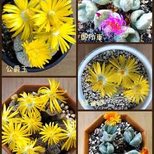 やっと見る事が出来たリトープスのお花畑😆💕 コノフィツムは色々な色味の花がぽつぽつ咲き始めました 黄花が多いので、コノフィツムの花はさし色になっています👍✨