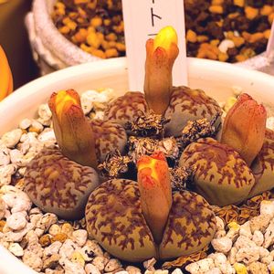 Gemmafoliaさんからお迎えしたホワイトニンフ 以前お迎えしたものは残念ながら黄花だったので、今度こそは白花が咲いて欲しいです ところで、最近トットシーンズさんから群仙園さんのリトープスを幾つか注文する事が出来ました🙌 届くのはこれからですが、注文した中にはホワイトニンフもあるので楽しみです😊