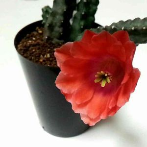 🌵サボテン桃太郎🌵開花✨✨✨ 大きくて朱色です❣️ 蕾は濃い赤♥️ まだまだ楽しみ~😆✨
