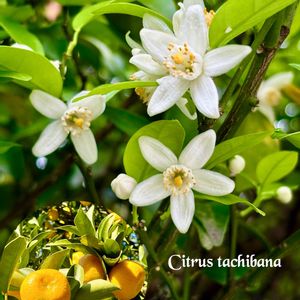 今日のお花*タチバナ 神社⛩️の境内にあるタチバナの木 5月の可愛いお花🤍、12月の実なり🍊を今年も見て来ました˚✧₊⁎ 《スライドpic》 ① ~③ お花の甘い香りを楽しみながら🤳 ④、⑤ 🌳🍊🍊🍊🍊・:*+.