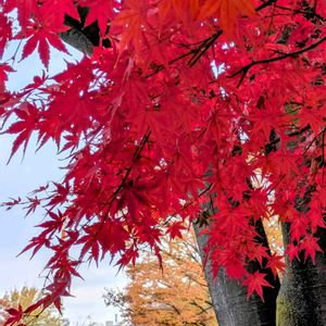 リハビリついでの いろはにほへと… イロハモミジの紅葉散歩で🍁✨ 1️⃣真っ赤が綺麗でした♥️ 2️⃣オレンジ色が綺麗でした🧡 3️⃣休憩😌☕💕 我が家のブロウメアナ ようやく花二輪🤍🤍💕 可愛いですね🤩 4️⃣緑 赤 黄色💚❤️💛 色いろいろ綺麗でした 5️⃣黒に近い赤…深い色でした🖤♥️ 飛びそで飛ばない… 蜘蛛の糸で繋がる🍁 ヒラヒラ蝶のよう🦋 今日も 笑顔😄で過ごせますように💐