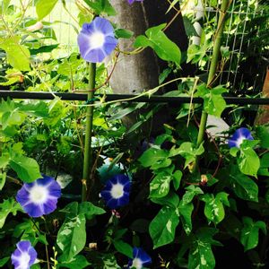 実家の北側に地植えしている朝顔は、夕方になるとピンクに色が変わるんです! ほんとに(笑)