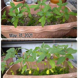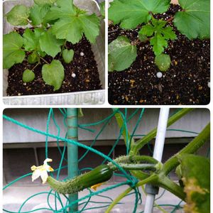 鉢植えプチ家庭菜園🥒🍅 オクラの投稿を忘れていました。 去年までは地植えでしたが、鉢植えも今のところ順調に育ってくれてます。 下はキュウリの赤ちゃんです。可愛い、嬉しい❤️ このまますくすく育ってね〜🥒