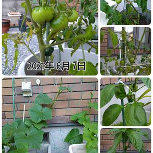 鉢植えのプチ家庭菜園🔰 トマトの実が大きくなってきました。 あと、ちっちゃいピーマンも…🤭 ここ数日、時間に余裕がなくて気付けなかった変化。 今日、気付けて良かった。 ホッとする時間です。