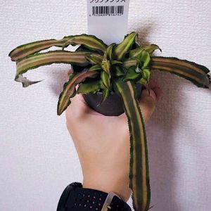 昨日、たまに行くHCに行ったら、なんとガラーんとした棚に、「クリプタンサス」と書かれた植物発見!! もしや、これは、ブロメリアの仲間?と咄嗟に思って調べたら、やっぱりそうでした✨ でもブロメリアはまだ育てる自信が無かったので一旦諦めて帰ったものの、やっぱり!と閉店間際に走って迎えに行きました👍 そして、やっぱり植え替え方がよく分かりません😓 水苔を根の所に巻いて、土は水はけの良い用土にしたらいいのでしょうか? 宜しければ教えてください🙏🏻 よろしくお願いします🙇♀️