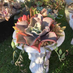 大きな大きな多肉植物の寄せ植え。 高砂の翁がさらに大きくなった気がする。