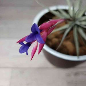 今日は母のチランジアを拝借🌿 室内置きで日光不足のせいなのか色が薄めです💜
