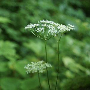 カノツメソウ(鹿の爪草) 別名 ダケゼリ(岳芹) セリ科カノツメソウ属 花期は8〜10月 北海道〜九州の山地の林内に生える多年草! 高さは50〜100cm 根生葉や下部に付く葉は2回3出複葉 茎上部よ葉は3出葉の広卵形から広披針形! 分枝した先に白い小さな5花弁の複数形花序を付ける!雄しべが長く突き出ます。 名前は、根の形が鹿の爪に似ていることからで、根が太くて短く、数本まとまって生えている様子が鹿の爪を連想させるため! でもまだ根を見た事がありません? ・別説として、3出複葉の葉の形が鷹の爪に似ていることから「タカノツメソウ」が転じて「カノツメソウ」になったという説もあります! 暑い中ですが涼しげです♪ 8月27日撮影