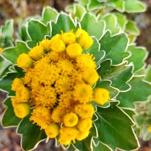 イソギク 今日のお花 葉っぱのみどりに 白色の縁取りが 爽やかで とてもステキです 🟡💚