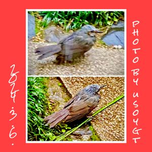 テーマ「☔️」…我が家の小さなお庭…ヒヨドリの散歩を発見(番外編)🤗