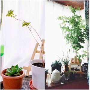 右のポットくらいの高さのバスケットに収まっていたスキンダプサスも40日で1.2m位のツルになりました。 ゆっくりな成長のチランジアと同じように、目に見える成長する植物も面白いです🤗
