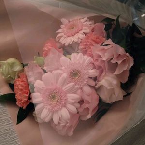 先日、娘が友達の結婚披露宴で頂いてきたお花です。 お花の名前どなたか教えてください🙏 お花の後ろの葉っぱも丸くて可愛いけどこれもなんの葉っぱなのか⁇ 教えて頂き、すべての名前が分かりました ありがとうございました😊