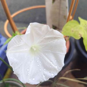 大輪朝顔「雪」 雨に打たれても真っ白な花が綺麗に咲いていた^^