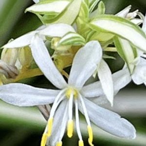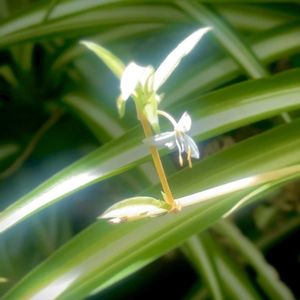 【季節の花華シリーズ:折り鶴蘭】《ほぼ実物大》 ♧折り鶴蘭:オリヅルラン;Spider plant 📝ベランダで植栽養生中の折り鶴蘭に小さな可愛い花が咲いています。 BGMの音源として、直ぐ目の前に在る⛩️八坂神社の境内の大銀杏の樹で熊蝉たちが、朝早くから賑やかにして、ラブコールしているように鳴いていますデス🐶 ✍️Works;Poetaster Kazyan Doe.,//筍歌人;藪中和堂 Artistic;Spider plant flower July 27,2025:past am 11:00’;📱shooting July 27,2025:past am 11:25';upload by Kazyan’s Green Studio