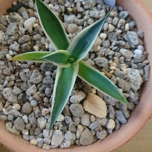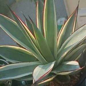 アガベ スノーグロー (ブルーグロー錦) 意外と成長早いかも☺💕 棘が太陽の光で赤く見えていいですね。