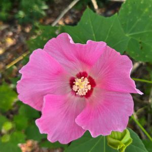 10月は神無月(かんなづき)、神の月(「無」は「の」を意味する)。 全国の神々が出雲大社に集まり、各地の神々が留守になる月という説などもある。 これは旧暦、現在でも使用されることもあるが、現行歴とはその1〜2月後位の季節感のずれがあるという。  時季は秋へ、季節は先へさきへと進む。私の散歩道の道際等の草花達は、今、その季節の変化もにゆっくりと順応しようとしている--- 9月からの、より充実した時季を享受しようとしている草花達の姿 ---その12。   /夏惜しむように間断なく、    咲くはピンクと真っ白な5弁花/    10月の上旬。暑くも熱かった長い夏が、ようやく秋を招き入れてくれた何時もの散歩道の道際。 その道際は、まだ夏の余韻を残してながら徐々に、草花たちのポスト夏への営みが始まっているようである。そう思いながら、少し足を速めた。 その行く道を、何かしらに左に少しそれて入った。例の施設の奥まった脇に、出逢い見たのは2m以上あろうかの低木の枝先に、花径15cm以上はありろうか、スッキリとした綺麗なピンク、そして真っ白な5弁の花幾つかが、そこに。 そして、その低木には、未だ開かざるその蕾が沢山に付けていた。     今年は、この8月に、別処であるが、すでにこれと同様の開く花を見てきたところである。 この草花の花は、朝咲いて夕方には萎む一日花と言われ、花期の間次々と途切れることなく開花するという。 以外と 夏を惜しむかのように間断なく咲くようである。   フヨウ(芙蓉/モクフヨウ<木芙蓉>) ・フヨウ<芙蓉、別名 モクフヨウ<木芙蓉>>(アオイ科 フヨウ属/ビビスクス、ハイビスカス属)   (備忘: フヨウの属性等について 8/16or8/17 ‘23)