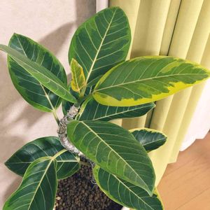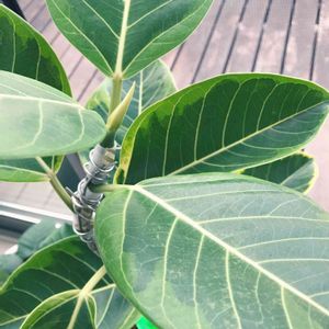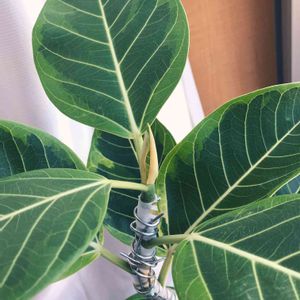 皆さん、こんにちは✋ 台風、近づいてますね。 仕事で外現場のある方々、自宅で一人で過ごされて頑張っておられる方々等、自分も含めてですが、くれぐれも いろんな事で気をつけて台風に備えましょう。 今朝、パチリしました。フィカスデコラ。 以前にも投稿しましたが、その後 曲がりにハマって 今こんな感じで針金で巻いて 痛々しくもギプス中です。