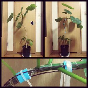 フィカス・ウンベラータを曲げてみた! 一昨年に曲げたんだけど、ほぼ真っ直ぐに戻ってしまいました(´・ω・`) 今年はとあるブログを参考にホース、結束バンド、針金で。 針金でグルグル巻き上げる矯正だと、幹に食い込んでまるでリ○トカットの跡のようになってしまいました( ゚д゚) このホース作戦に期待です!