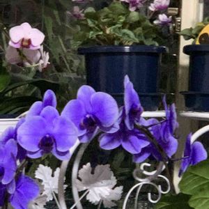 おはようございます😃 4月にお迎えした子が葉っぱだけになっています。で、お花が咲くのを待ちきれず新人さんをお迎えしました😊蕾も沢山有ります💜💜💜