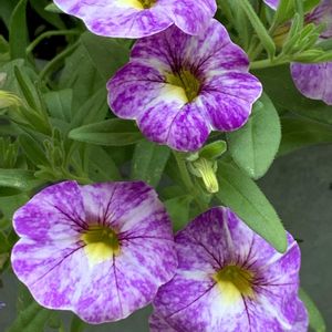 おはようございます😃 2か月前位にお迎えしたチョット色目が変わったカリブラコアちゃん💜 2株植え用の鉢で満開になっているハンギングなので雨の被害を心配してウッドデッキに避難しましたが昨夜の☔️で屋根付きの3メートル以上あるウッドデッキが後50センチの所まで水浸しになってます😱 今日も一日☔️予報🥲 土砂崩れや家屋の浸水など被害が有りませんように🙏