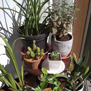 手前のピレアネクサスエデンは、HCでレスキューした時は、弱りかけでしたが、元気にもりもりと垂れ下がって来ました🍀 奥のヒポエステスは、たくさん小さなピンクのお花が咲いています💕 千日紅も次々と咲いてくれてます☺